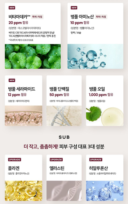 • 병풀 추출물 & 시카 성분으로 피부 장벽 강화 & 진정 효과